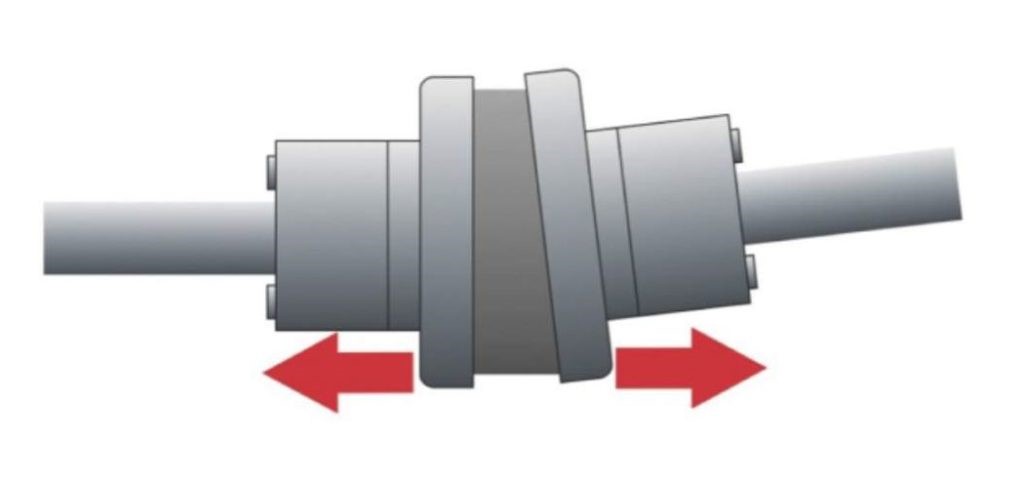 3.8-mils/1 اینچ عدم الاینمنت زاویه ای افقی 5.4 برابر تحمل الاینمنت شفت مجاز 0.7 mils/1 است. 3.8 mils/1 اینچ همان شکاف 15.2 میلی در هاب کوپلینگ O.D است. (3.8 میل در 4 اینچ قطر توپی کوپلینگ). این مقدار عدم الاینمنت زاویه ای نیروی محوری فوق العاده ای را از کوپلینگ به شفت ها منتقل می کند.