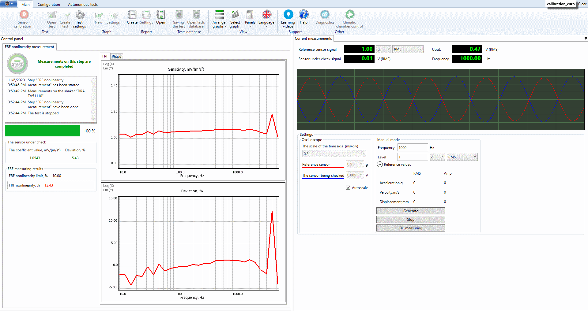 علیرغم این واقعیت که با تجهیزات کالیبراسیون (کالیبراسیون ارتعاش سنج) کلیه محاسبات و تحریکات به صورت خودکار و بدون هیچ ورودی از کاربر انجام می شود، فرآیند تحریک سینوسی زمان زیادی می برد.