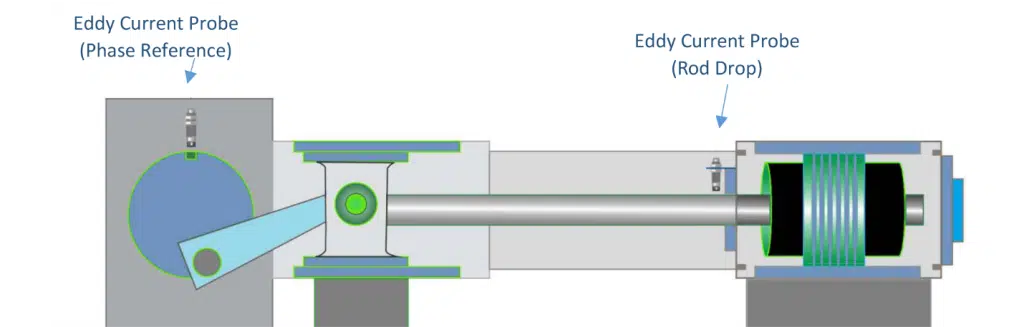 بسیاری از کمپرسورها یا پمپ های گاز فشار قوی در صنعت از نوع رفت و برگشتی هستند. دو نوع اندازه گیری در این نوع ماشین ها بیشتر رایج است. نوع اول اندازه گیری ارتعاشات کلی سرسیلندر توسط شتاب سنج است. نوع دوم اندازه گیری Rod Drop پیستون است تا اطمینان حاصل شود که باندهای سوار پیستون تا حد خطرناکی فرسوده نشده اند که ممکن است منجر به تماس احتمالی بین پیستون و دیواره های سیلندر داخلی شود. Rod Drop یک روند طولانی مدت از فاصله متوسط بین سنسور جابجایی سنج و میله پیستون است.