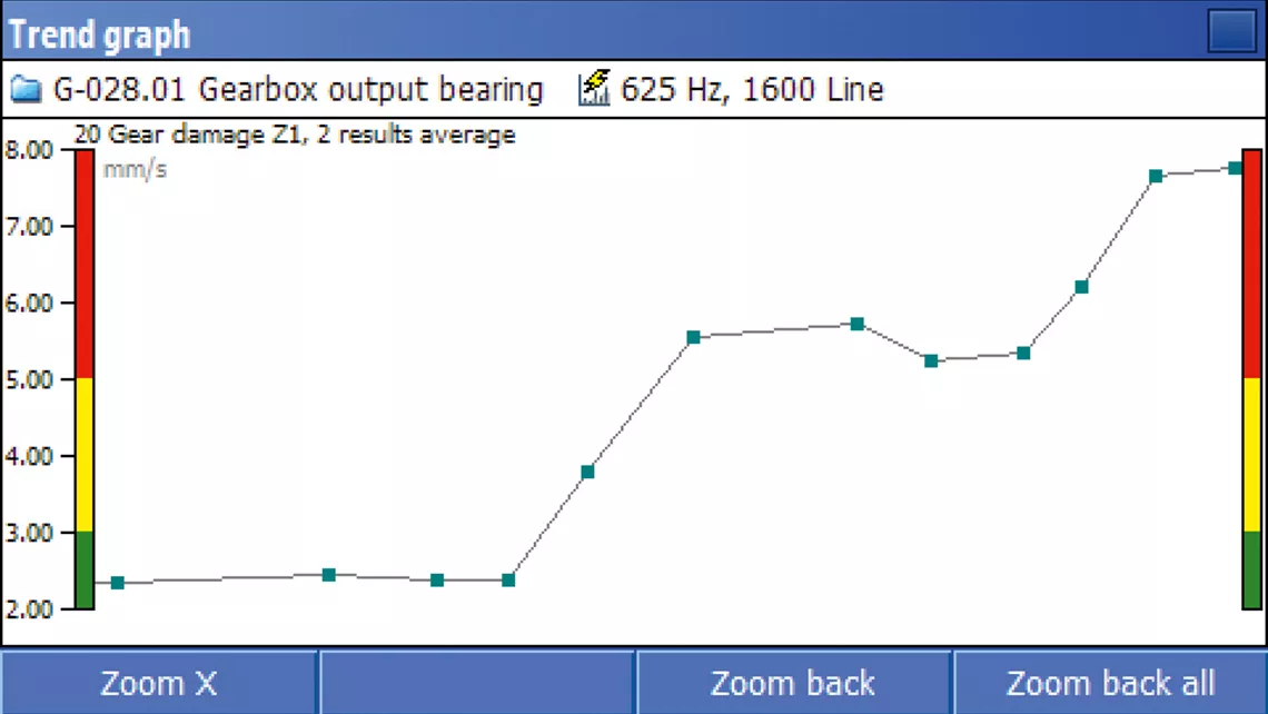 تکنیک اندازهگیری EVAM(Evaluated Vibration Analysis Method) با قابلیت تولید طیفهای تا 25600 خط همراه با زوم واقعی، امکان تشخیص سریع علائم خرابی ماشینآلات و همچنین پایش روند تغییرات (ترندینگ) را فراهم میکند.