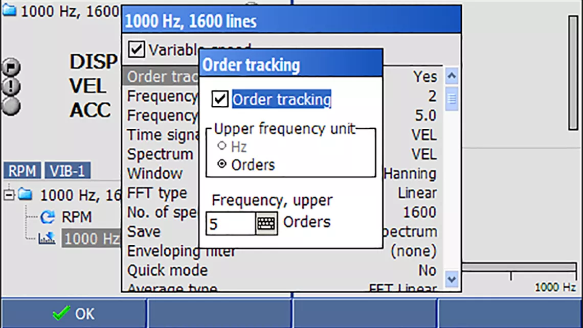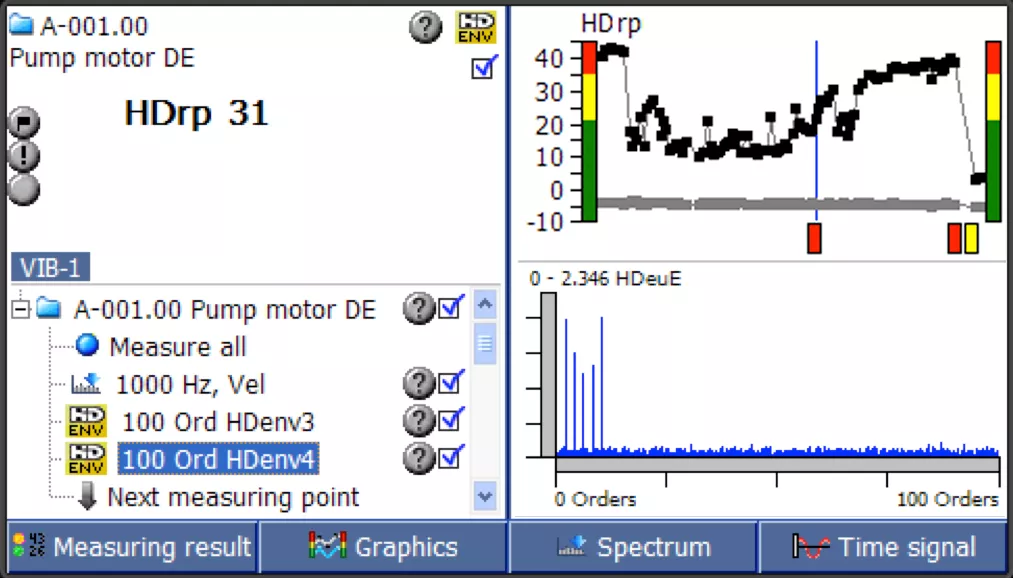 در ماشینآلات با سرعت متغیر، آنالیز ارتعاشات با قابلیت HD Order Tracking ، دادههای قابل اطمینان و نتایج اندازهگیری کاملاً واضح ارائه میدهد، حتی در مواردی که دور موتور (RPM) در طول اندازهگیری به میزان قابل توجهی تغییر کند. این روش در محدوده وسیعی از دور موتور (از تنها چند دور در دقیقه تا چند هزار دور در دقیقه) قابل اجراست.
