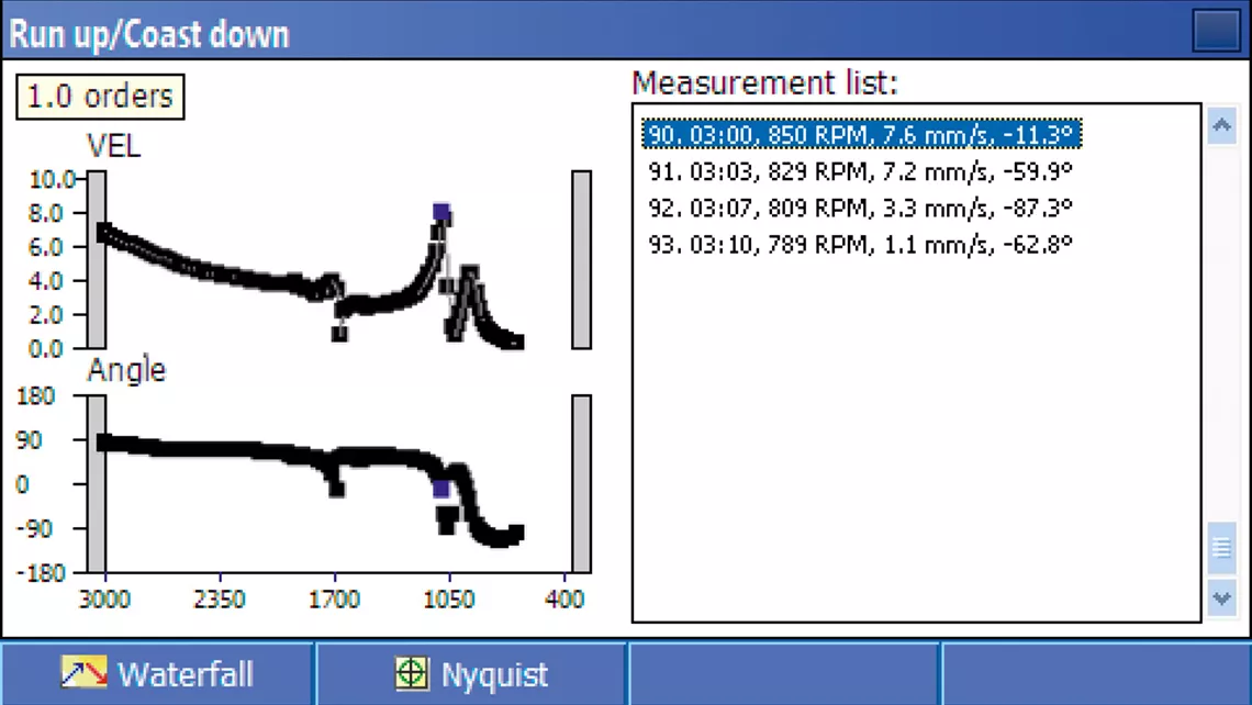 اندازهگیری Run-up/Coast-down ابزارهایی برای تحلیل ریشهای مشکل هستند و ویژگیهای ارتعاش سازه ماشین، فرکانسهای رزونانسی و واکنش در سرعتهای بحرانی را نشان میدهند.