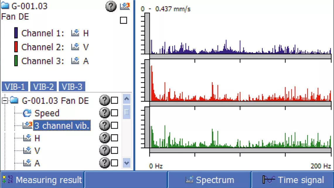 اندازهگیری سه کاناله ارتعاشات این امکان را فراهم میسازد تا حرکت ماشین را در سه بعد با مشاهده اختلاف زاویه فاز اندازهگیری شده در سه کانال مورد بررسی قرار دهید. این سیستم با قابلیت اندازهگیری همزمان سه کانال، امکان عملیات سریع و ارزیابی فوری نتایج را ارائه میدهد.