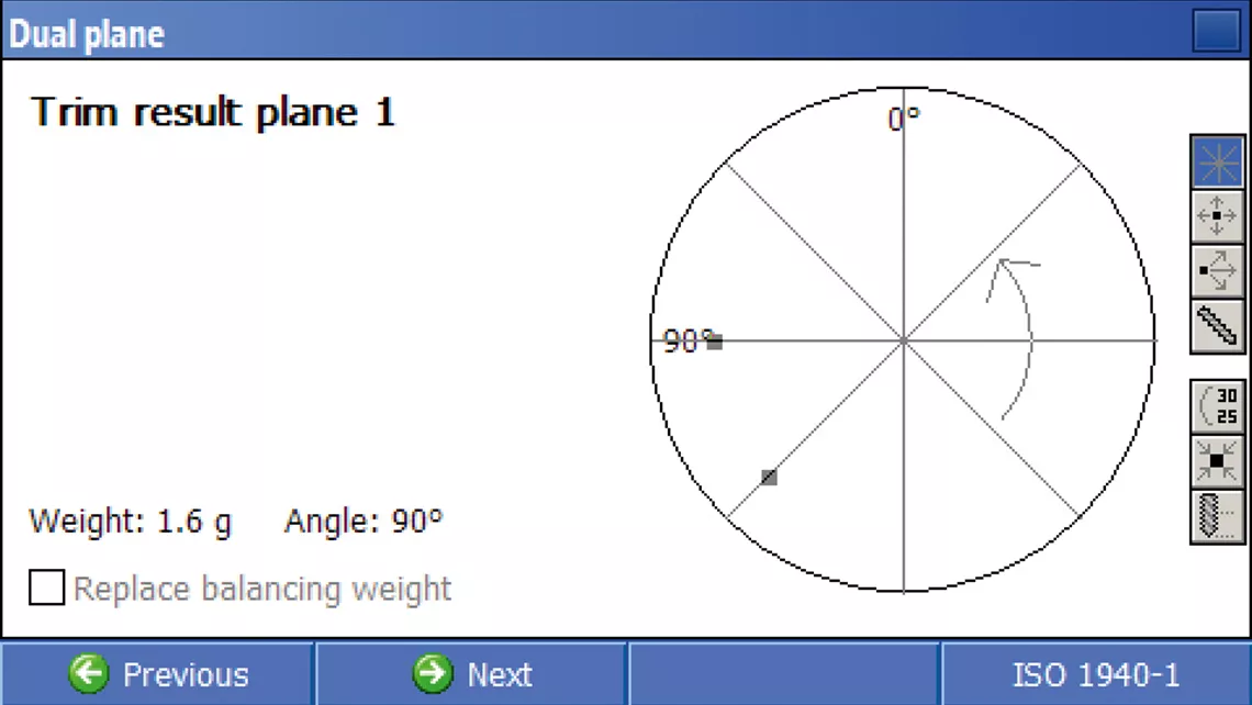 بالانس روتور یک صفحه یا دو صفحه مطابق با استاندارد ISO 1940-1، همراه با اندازهگیری اولیه ارتعاشات که کاربر را در فرآیند بالانس راهنمایی میکند و پیشنهادهایی برای اصلاح عدمتعادل ارائه میدهد.